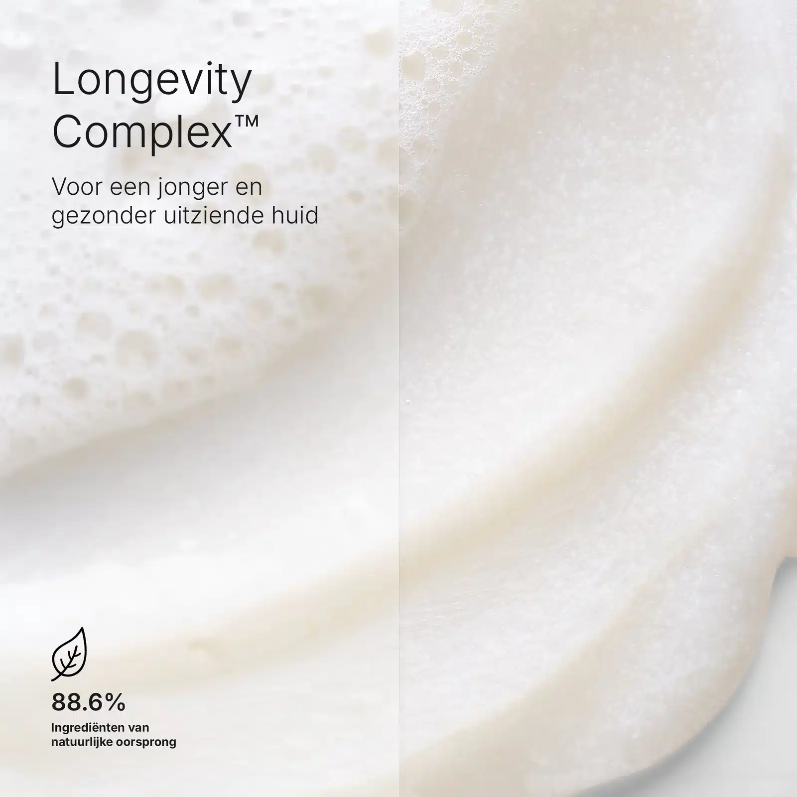 - Longevity Complex™ – ondersteunt de huid bij bescherming tegen externe stress